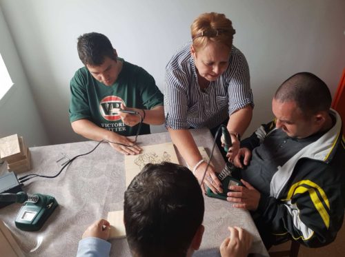 A Gyulai ÖnkéntesPont önkéntes segítőivel közösen kézműveskednek a Dél-Alföldi Wellness Egyesület mentorprogramjába bevont Békés megyei sérült fiatalok.